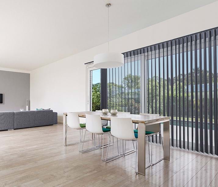 EOS Helix Vertical blind systems by Weathermaster® are suitable for a wide range of applications and are characterised by their flexibility, durability and the efficient versatile solar protection they provide. Classic function and form.