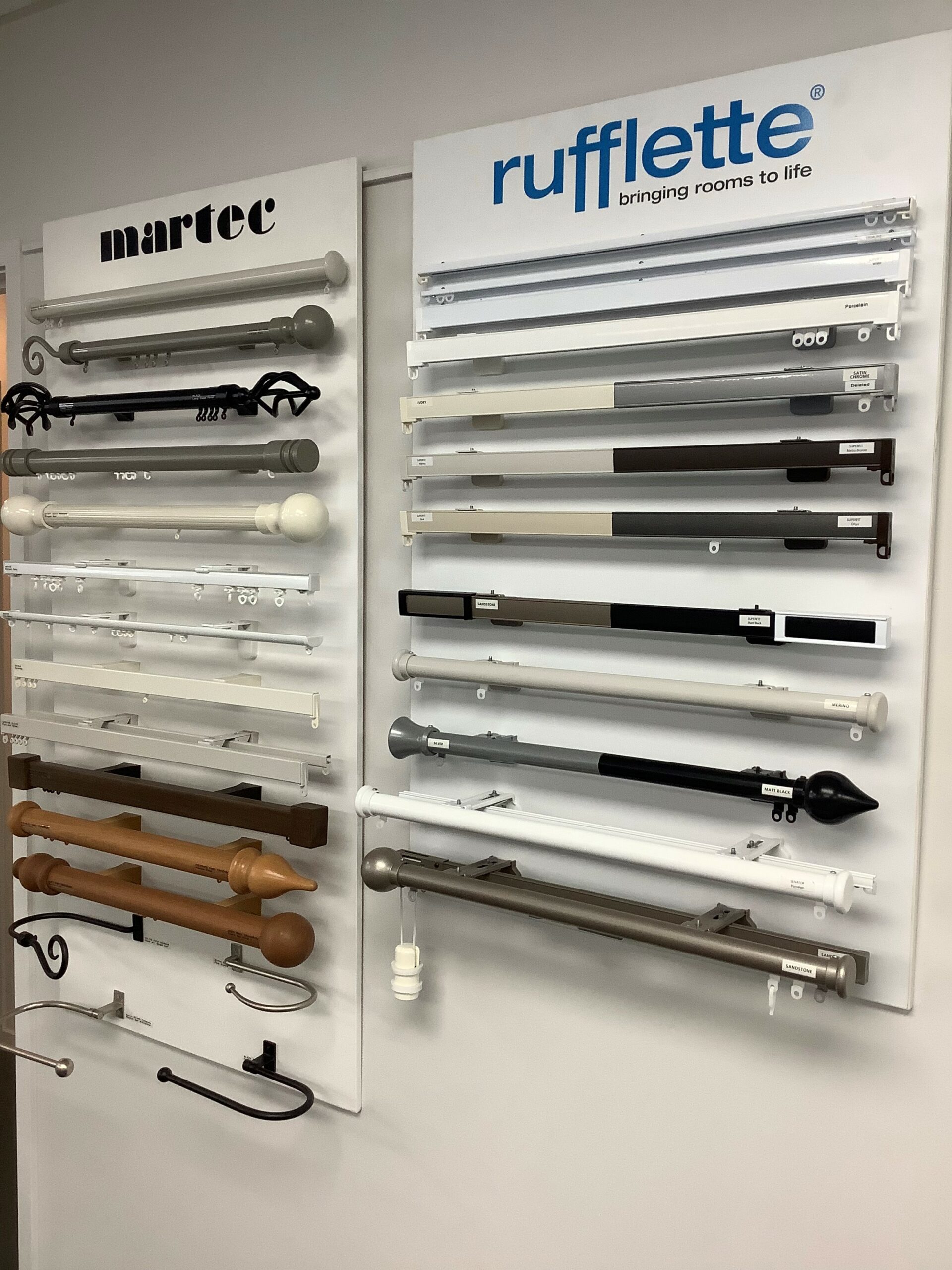 Foldaway, static or swivel in a colour to match your track or rod. There is a size and shape to suit every fabric and style!