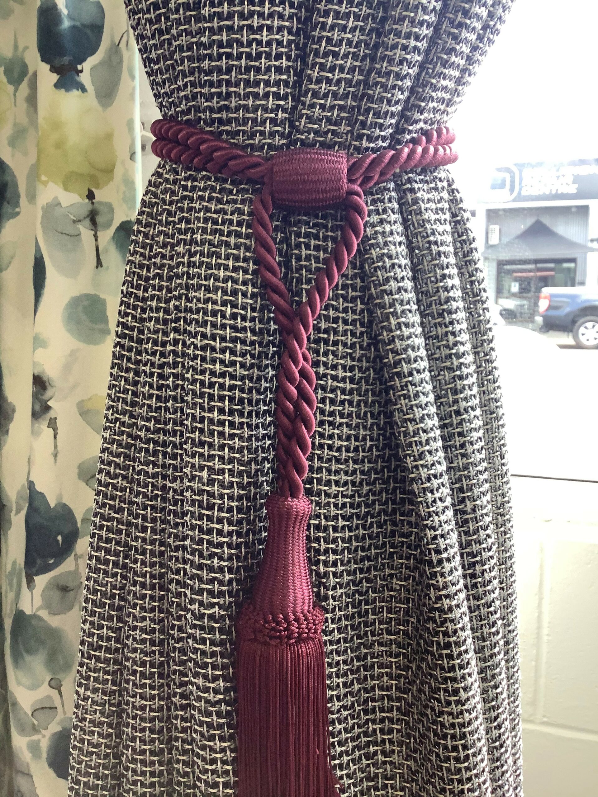 Acorns tassels or plain button ends with twisted or braided cord. There are magnetised options available on these style as well, this means no hooks in the wall required. Luxury and charm for all fabric and styles.