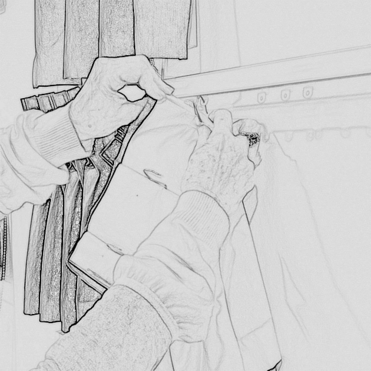 Vacuum your curtains to remove dust then take your curtains down, removing all hooks and rings.